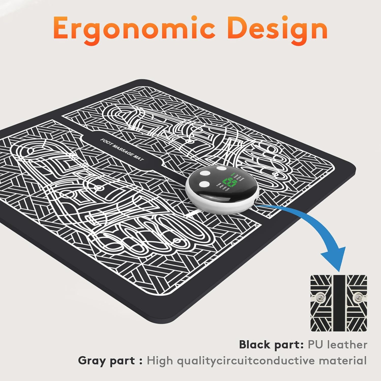 A durable silicone footpad with a conductive surface can be cleaned with a wet towel after use. High quality, Lightweight, foldable, and travel-friendly, massage your feet anytime, anywhere with confidence.