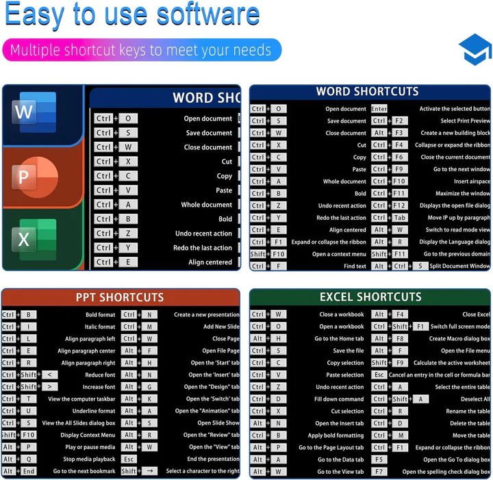 Anti-slip Keyboard Pad is designed with an office software shortcut key pattern that is easy to read and use. This pattern allows users to quickly and easily access frequently used commands and functions.